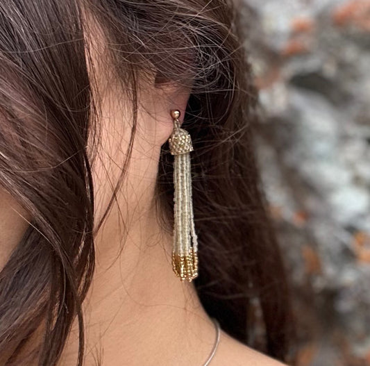 Super Long Tassel Earrings, Oyster with 24K