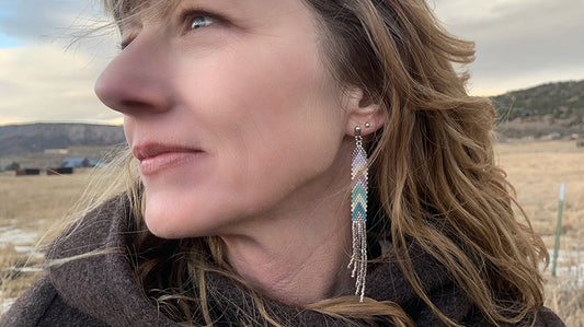 Long Skinny Chevron Fringe, Pastels with Sterling Silver