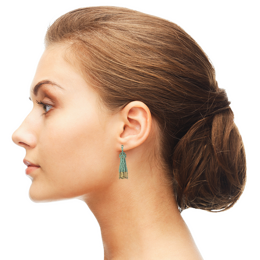 Mini Tassel Earrings in Seafoam with 24K Gold