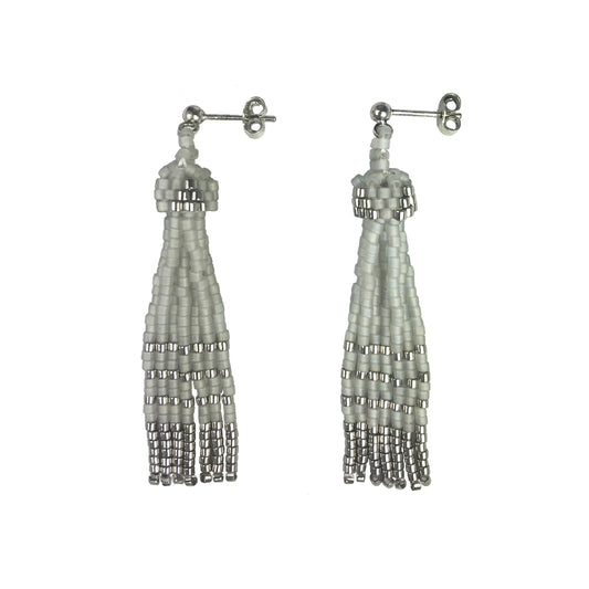 Mini Tassel Earrings in Ghost Grey with Palladium