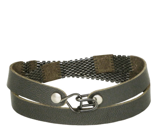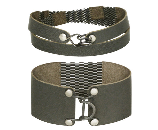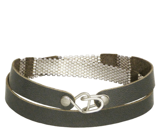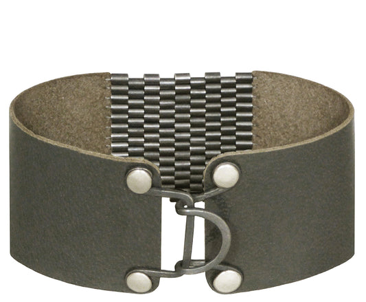 Striped Patina Silver Wrap Cuff in "Ash" Leather