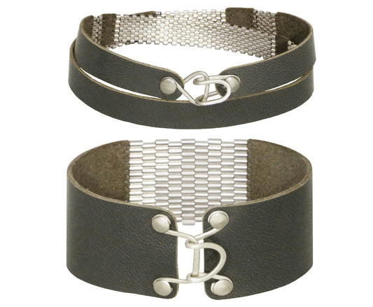 Sterling Silver & Leather Striped Wrap & 1" Wide Cuff Sets