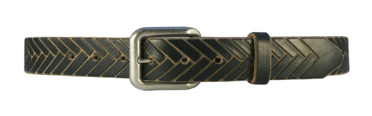 Black & Tan Hand-Carved "Herringbone" Leather Belt