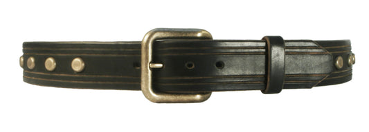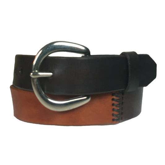 Black & Tan Hand-Carved "Feather" Leather Belt