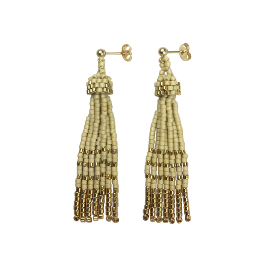 Super Long Tassel Earrings, Oyster with 24K